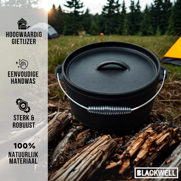 Blackwell Dutch Oven BBQ set Gietijzer - Braadpan + Lifter, Koekenpan ø 20 cm & Grillplaat ø 30 cm - 4 Delig