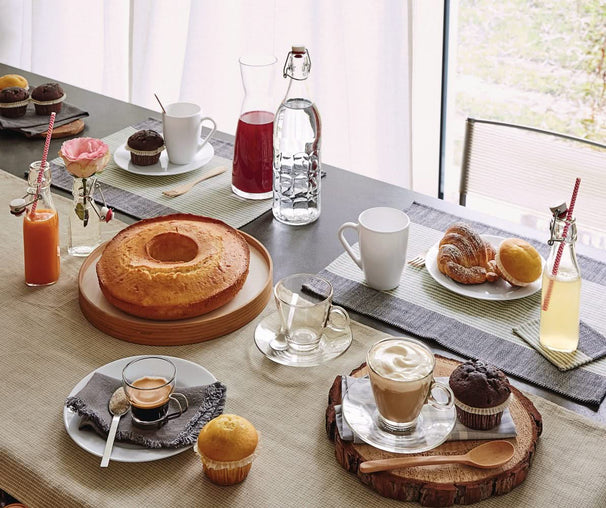 Combineer Easy Bar glazen met elegante theeglazen om een warme, uitnodigende tafelsetting te creëren. Door verschillende vormen en formaten te mixen creëer je een veelzijdige en persoonlijke presentatie die past bij je gastvrijheid en smaak.