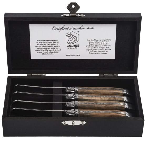 Met de Laguiole Style de Vie Botermessen smeer je boter, kruidenboter en zachte spreads met stijl en gemak. Deze luxe botermessen, gemaakt van hoogwaardig roestvrij staal en verkrijgbaar met handgrepen in zwart, parelmoer, olijfhout en dark wood, zijn een elegante toevoeging aan elke ontbijttafel of borrelplank. Dankzij het brede lemmet en de afgeronde punt verdeel je boter moeiteloos over brood, crackers of toast.