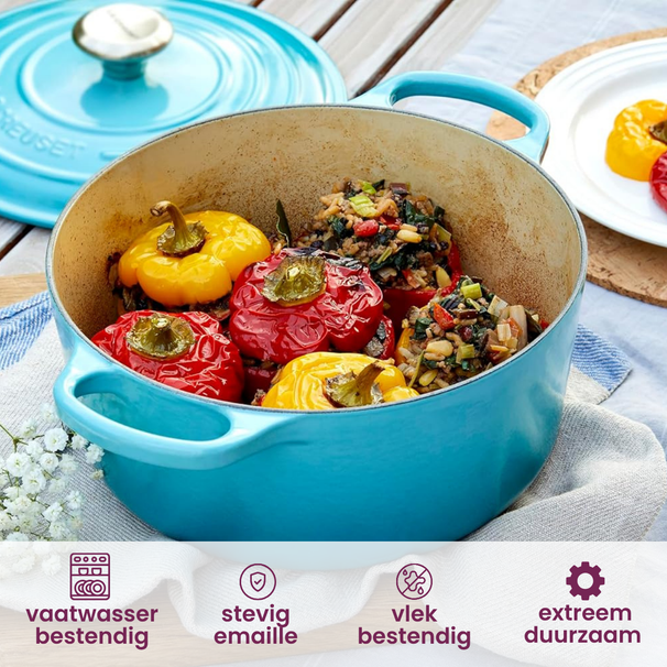 Ben je op zoek naar een pan die alles kan? Dan zijn de Le Creuset braadpannen precies wat je zoekt! De pannen uit de Signature collectie zijn gemaakt uit hoogwaardig email. De pan is voorzien van een speciale coating die er voor zorgt dat de pan tegen stoten, krassen en schrapen kan. Ook bakt je gerecht niet aan in de braadpan. De pan is goed voor het bereiden van bijna elk gerecht! Maak bijvoorbeeld een heerlijke stoofpot of goulash. Of bak je gehaktballen in de pan. Bekijk alle vormen en kleuren van de Le Creuset Signature braadpan!
