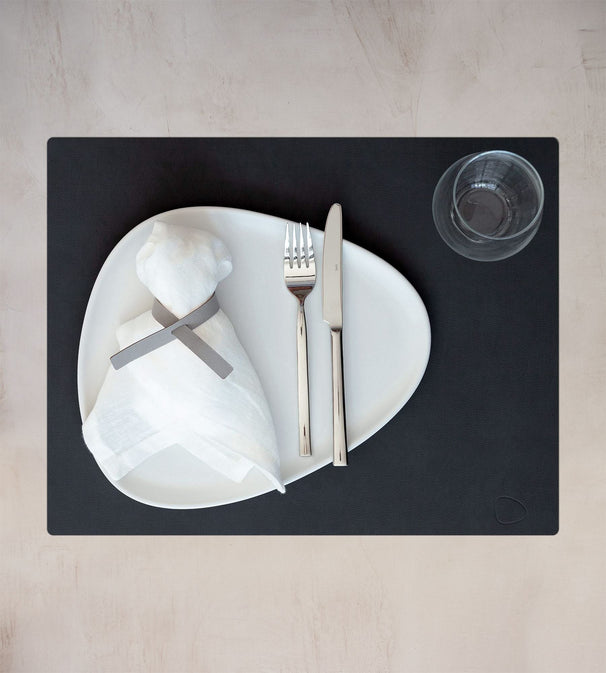 LIND DNA Placemats Hippo - Leer - Black Anthracite - 45 x 35 cm - 2 Stuks