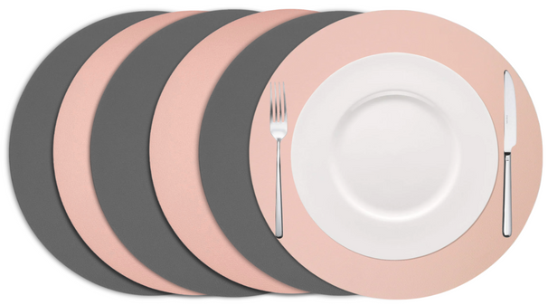Cookinglife Placemats - Dubbelzijdig - Vegan leer - Grijs / Roze ø 38 cm - 6 Stuks