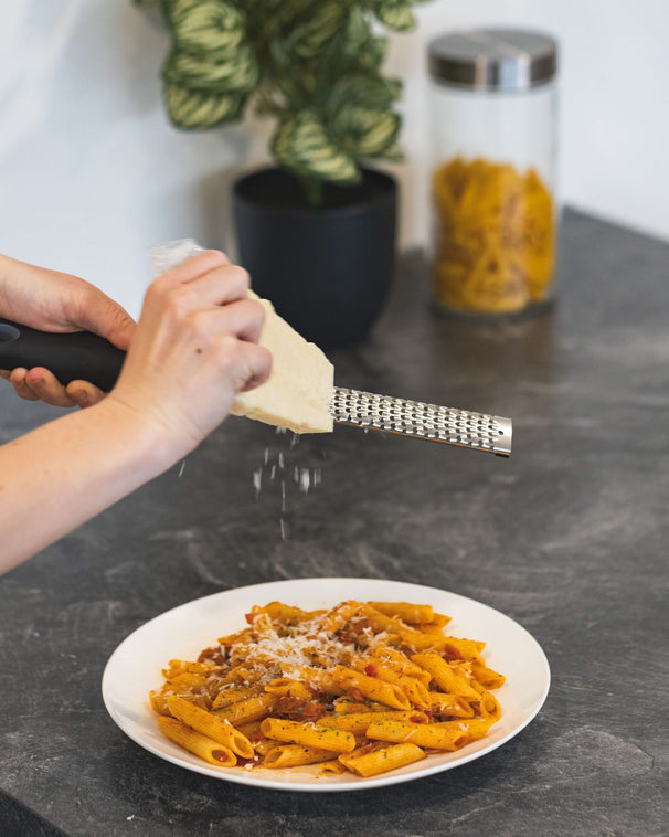 Een rasp is een van de meest veelzijdige hulpmiddelen in elke keuken. Het maakt het eenvoudig om ingrediënten als kaas, wortel, chocolade of citrusschil fijn te maken. Hiermee voeg je smaak en structuur toe zonder dat je ingewikkelde apparatuur nodig hebt. De fijne verdeling van ingrediënten helpt bij het gelijkmatig opbouwen van smaak in je gerechten. Door het handmatige gebruik behoud je volledige controle over hoeveel je toevoegt. Het gebruik is snel, precies en zonder voorbereiding. Daarmee is dit gereedschap geschikt voor dagelijks gebruik, zowel bij koken als bakken.