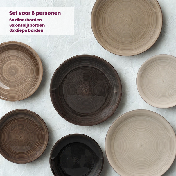 Cookinglife Serviesset Belize - 18-delig / 6 personen - 6 dinerborden ø 25 cm, 6 ontbijtborden ø 21 cm, 6 soepkommen ø 15 cm
