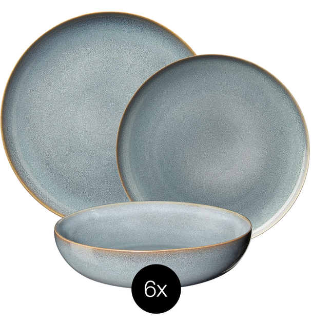 ASA Selection Serviesset Saisons - Denim - 18 delig / 6 personen - 6 dinerborden, 6 ontbijtborden en 6 kommen