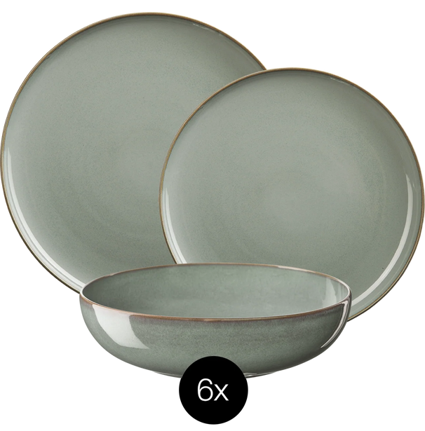 ASA Selection Serviesset Saisons - Eucalyptus - 18 delig / 6 personen - 6 dinerborden, 6 kommen en 6 ontbijtborden