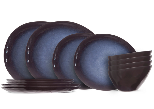 Ona Serviesset Duna Blue - 12-delig / 4 personen - 4 dinerborden, 4 ontbijtborden en 4 kommen