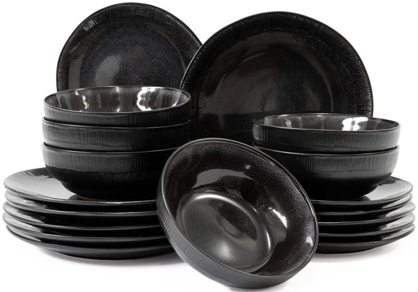 Studio Tavola Serviesset Black Tie - 18-delig / 6 personen - 6 ontbijt/dessertborden, 6 diepe borden en 6 dinerborden