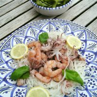 Volgens mij kan het niet veel makkelijk, sneller en simpeler dan dit gerecht. Deze rijstnoedels met garnalen, inktvis en edamame zijn gezond en super snel avondeten.