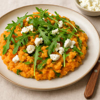 Stamppot met zoete aardappel, rucola & geitenkaas