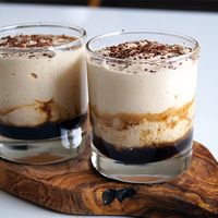 Suikervrij dessert met ricotta en koffie is een luchtig Italiaans nagerecht, perfect voor koffieliefhebbers. Het dessert bestaat uit lagen van opgeklopte ricotta met espresso, kaneel en vanille, gecombineerd met een koffiegelei gemaakt van lungo en agar agar. Na 20 minuten opstijven in de koelkast wordt het geheel afgemaakt met cacaopoeder of geschaafde chocolade voor een verfijnde, suikervrije afsluiting van de maaltijd