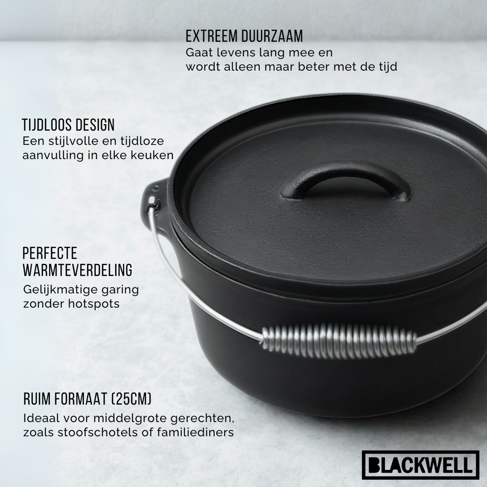 Voordelen van de Blackwell Dutch Oven met Deksel - Gietijzer - 25x11 cm - 4L