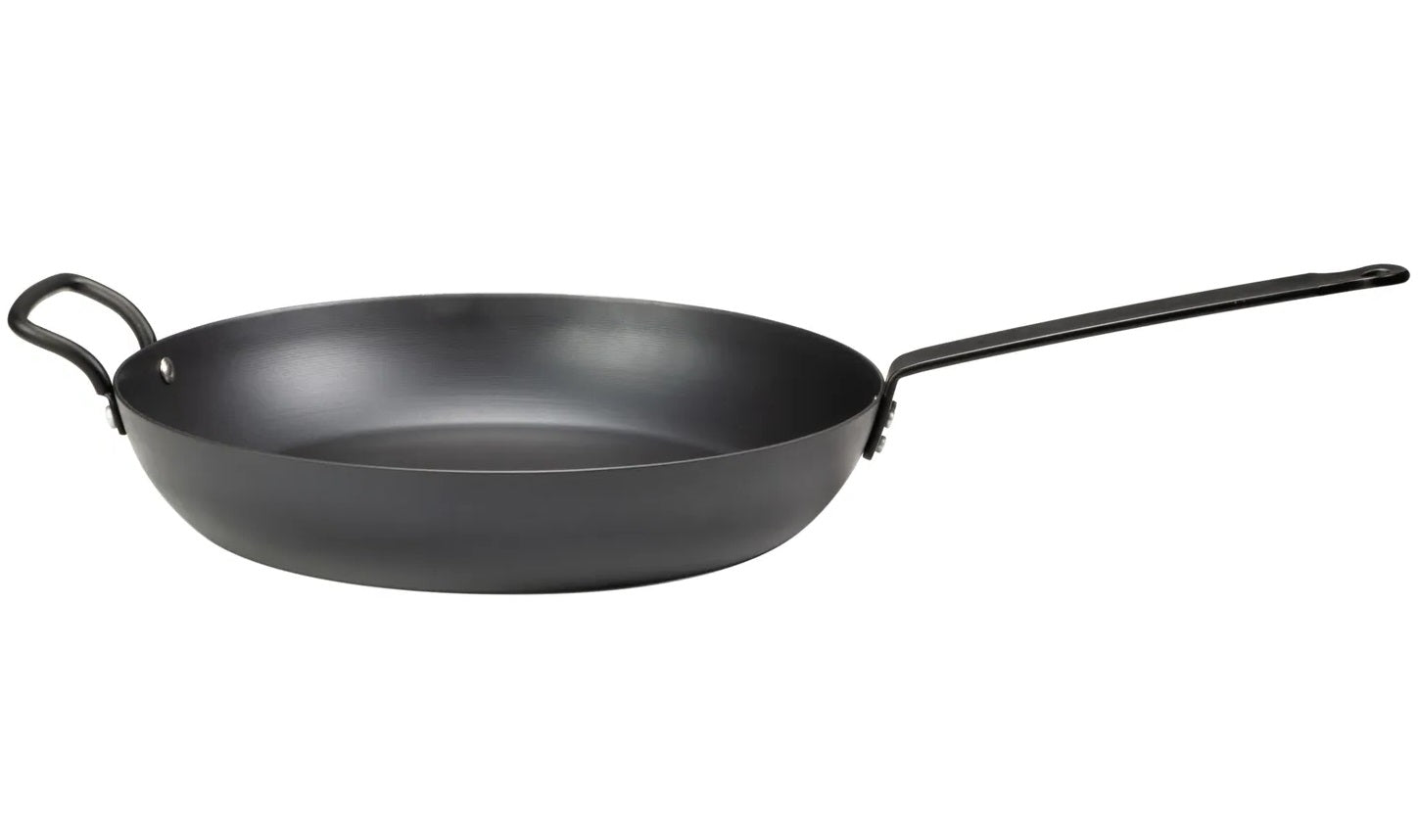 De Blackwell koekenpan van 32 cm met handvat is gemaakt van sterk carbon staal en ideaal voor grote porties of royale gerechten. Deze pan heeft geen kunstmatige anti-aanbaklaag, maar ontwikkelt door inbranden en gebruik een natuurlijke patina die zorgt voor een authentieke antikleefwerking. Stevig, duurzaam en geschikt voor koken op hoge temperaturen. Perfect voor vlees, vis, groenten en aardappelen.