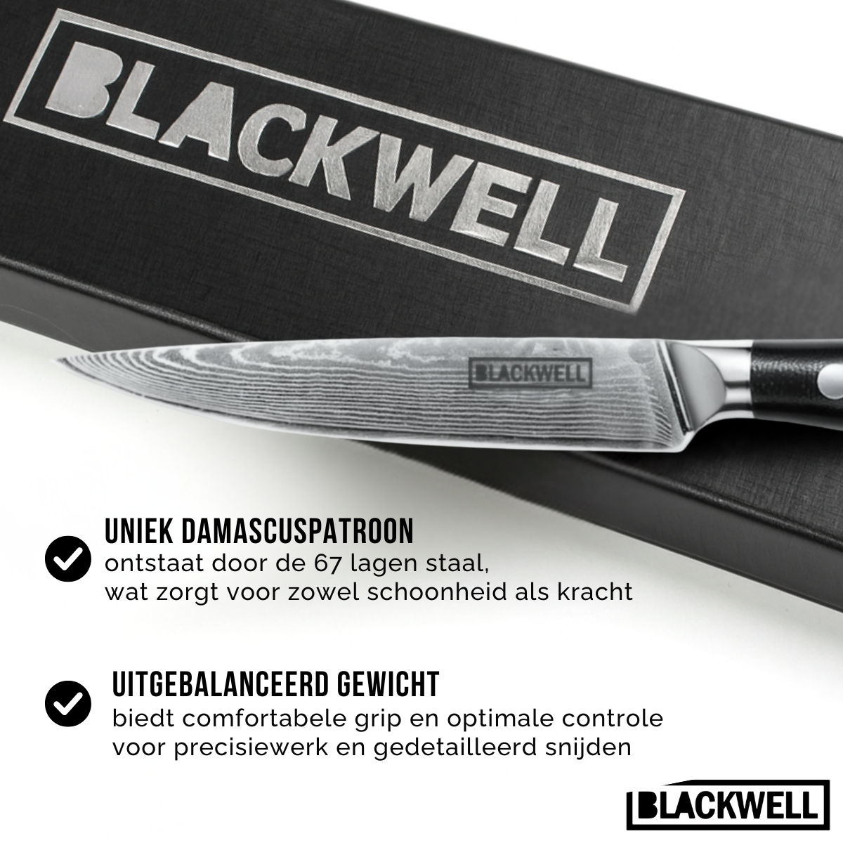 Blackwell Messenset (Koksmes + Groentemes + Officemes) - Japanse stijl - 67 lagen damaststaal - VG10 - 3-delig