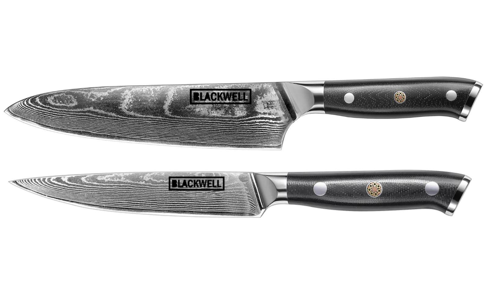 Omschrijving Blackwell Messenset (Koksmes + Officemes) - Japanse stijl - 67 lagen damaststaal - VG10 - 2-delig