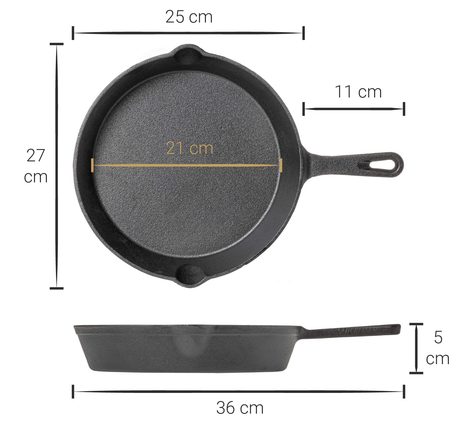 Onderhoudsinstructies: Gietijzer vereist specifieke zorg om zijn levensduur en prestaties te behouden. Het is aanbevolen om de pannen regelmatig in te oliën en met de hand te wassen zonder zeep te gebruiken, om de natuurlijke non-stick eigenschappen te behouden en te verbeteren met de tijd.