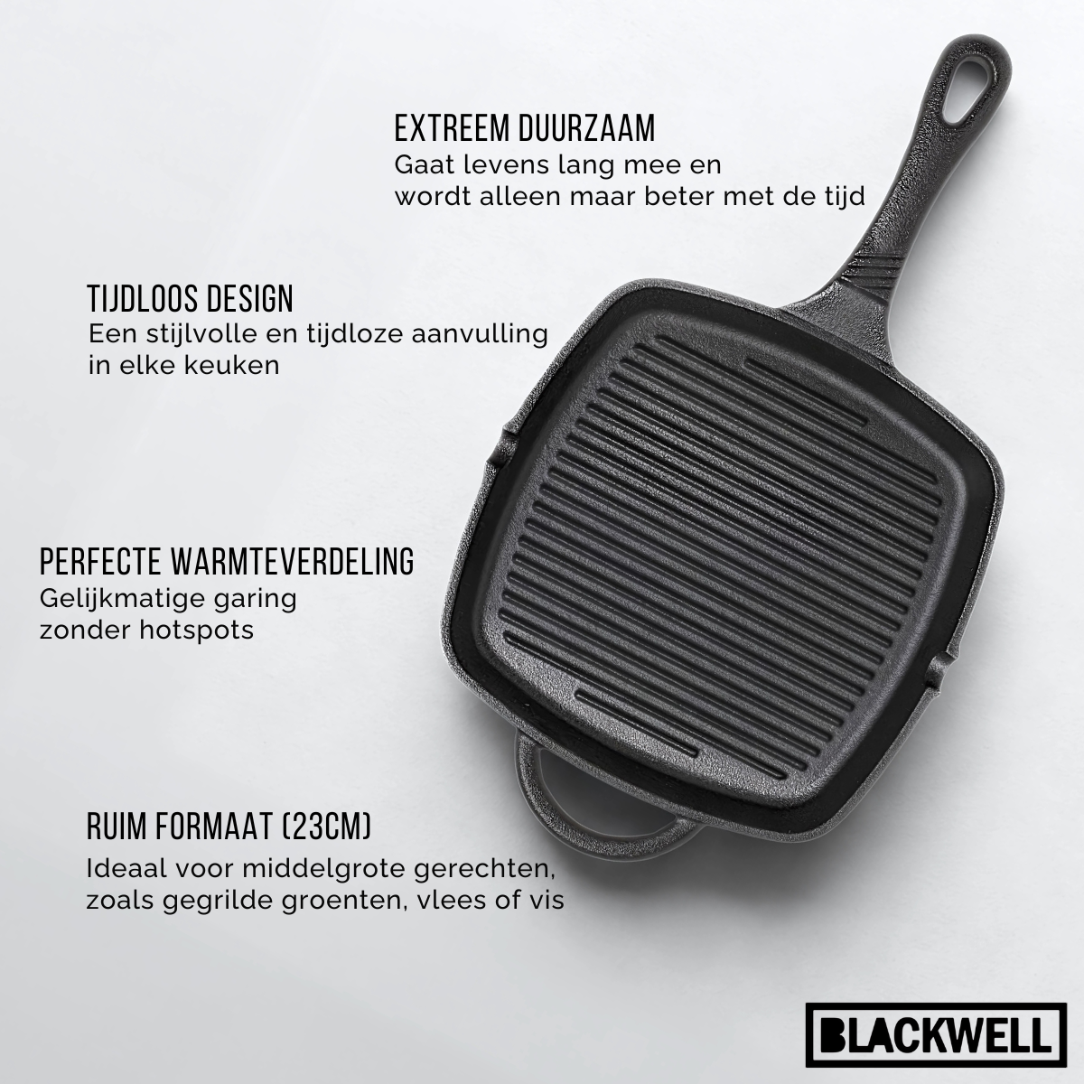 Blackwell Grillpan - Gietijzer - 23 x 23 cm - zonder anti-aanbaklaag
