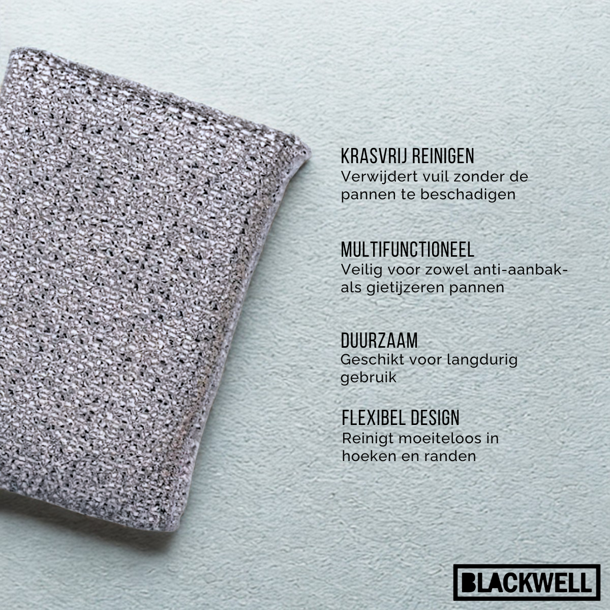 Het Blackwell Pannensponsje Zilver is ontworpen voor het effectief reinigen van pannen zonder ze te beschadigen. Dit sponsje is ideaal voor het verwijderen van etensresten en vet van je pannen, terwijl het tegelijkertijd krassen en beschadigingen voorkomt. Het zilveren ontwerp biedt een elegante uitstraling en het sponsje is geschikt voor het reinigen van zowel anti-aanbakpannen als gietijzeren pannen. Het is duurzaam en ontworpen voor regelmatig gebruik, zodat je pannen in topconditie blijven.