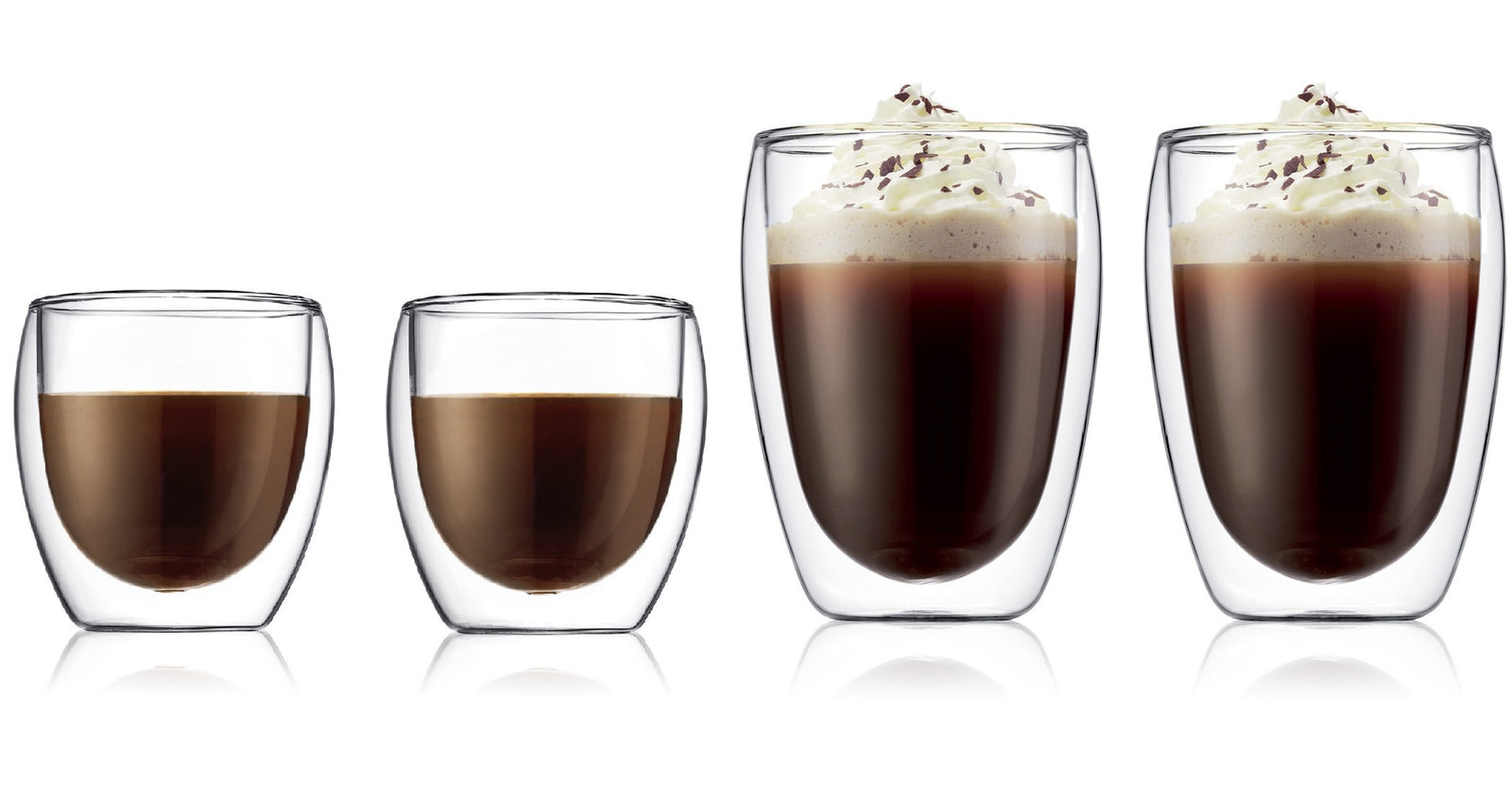 Bodum Dubbelwandige Espressoglazen & Koffieglazen Set Pavina 2x 80 ml & 2x 350 ml – 4 Stuks