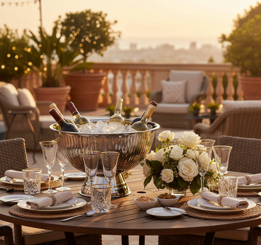 Met deze champagneschaal in chroomkleur combineer je stijl en functionaliteit voor je feestelijke momenten. De schaal is ontworpen om meerdere flessen of glazen elegant te presenteren — ideaal voor borrels of luxe diners. Dankzij de glanzende afwerking ziet je tafel er direct verzorgd uit.