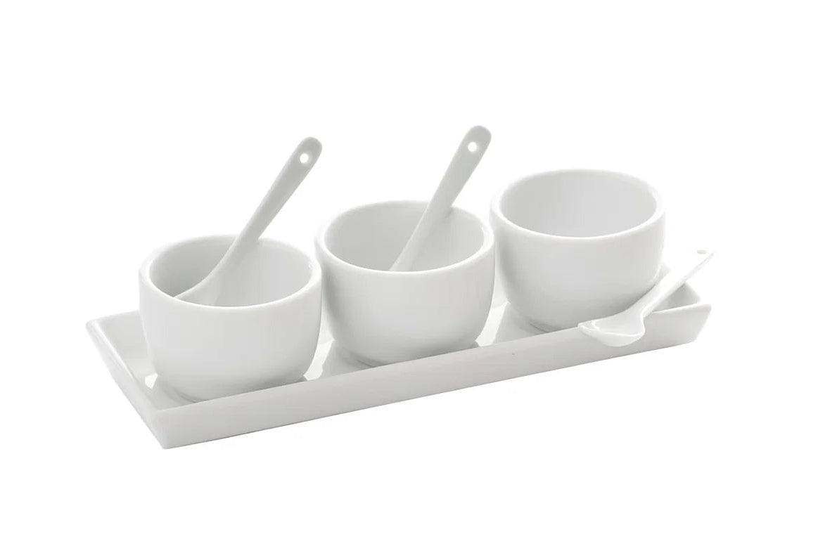 Maak je tafel compleet met deze stijlvolle 7-delige set dipschaaltjes van porselein. Perfect voor sausjes, dips, olijven of kleine smaakmakers die je gerechten aanvullen. Het fijne porselein zorgt voor een elegante uitstraling en laat elk ingrediënt prachtig tot zijn recht komen.