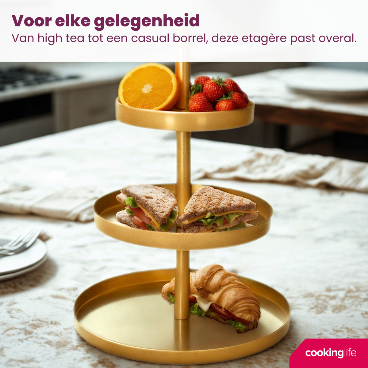 Voordelen van Cookinglife Etagère – metaal goud – 3-laags