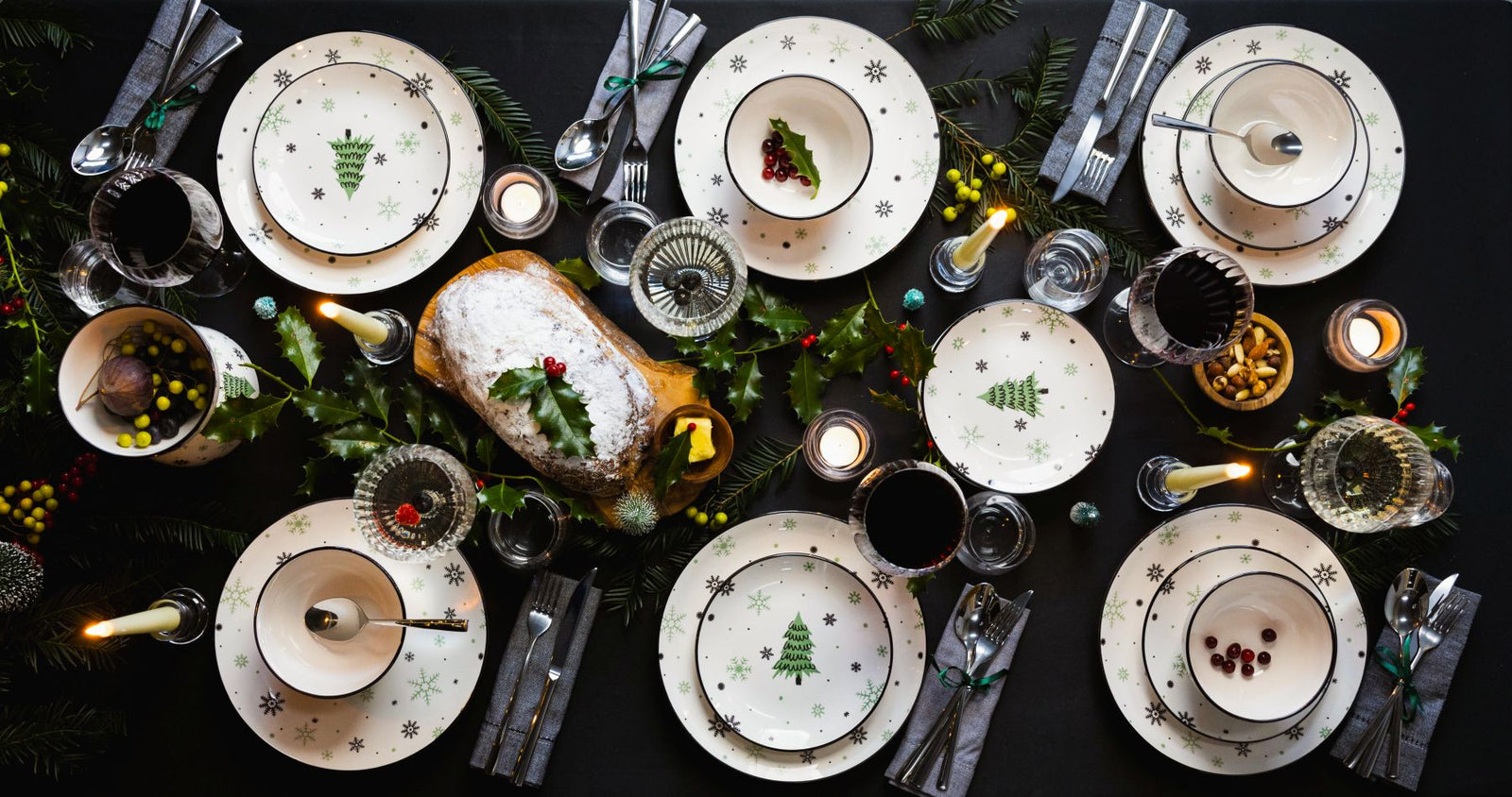 Sfeervol kerstdesign met groene accenten voor een warme tafelsetting
