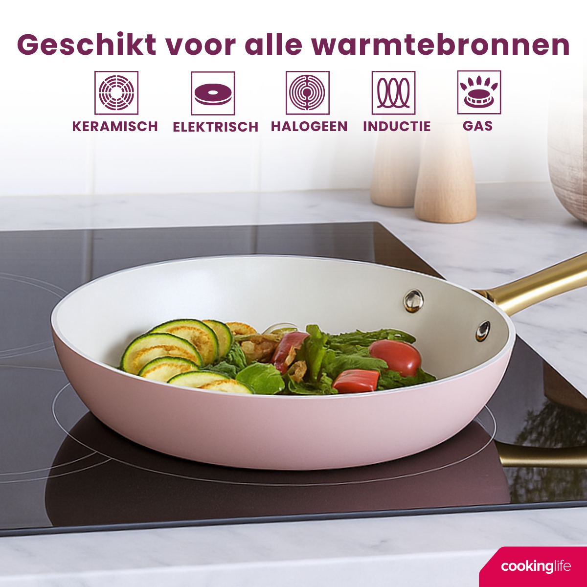 Cookinglife Koekenpannenset Style Groen – Ø 24 & 28 cm – Keramische anti-aanbaklaag