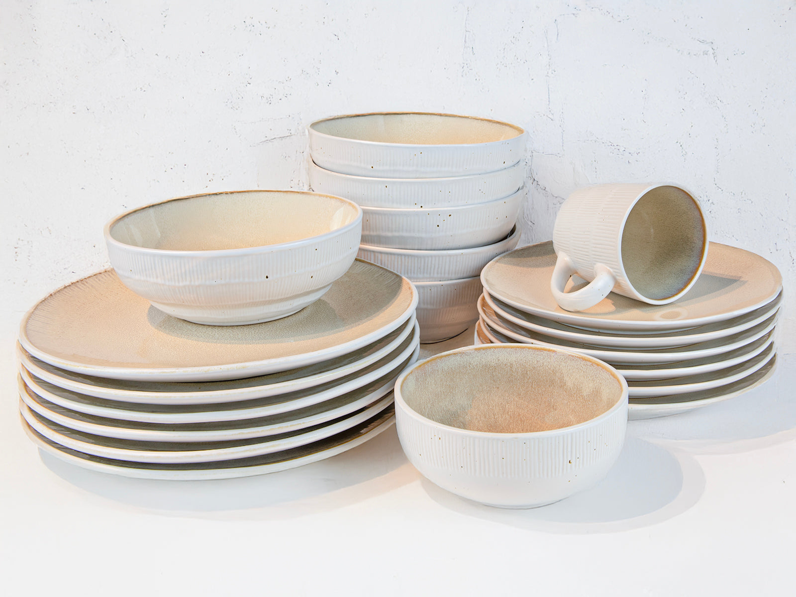 - Zandkleurig design – voegt een natuurlijke, rustgevende sfeer toe aan je servies