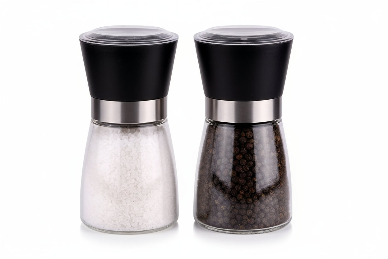 Omschrijving Cookinglife Peper- en Zoutmolenset - Glas - Zwart - 2-Delig