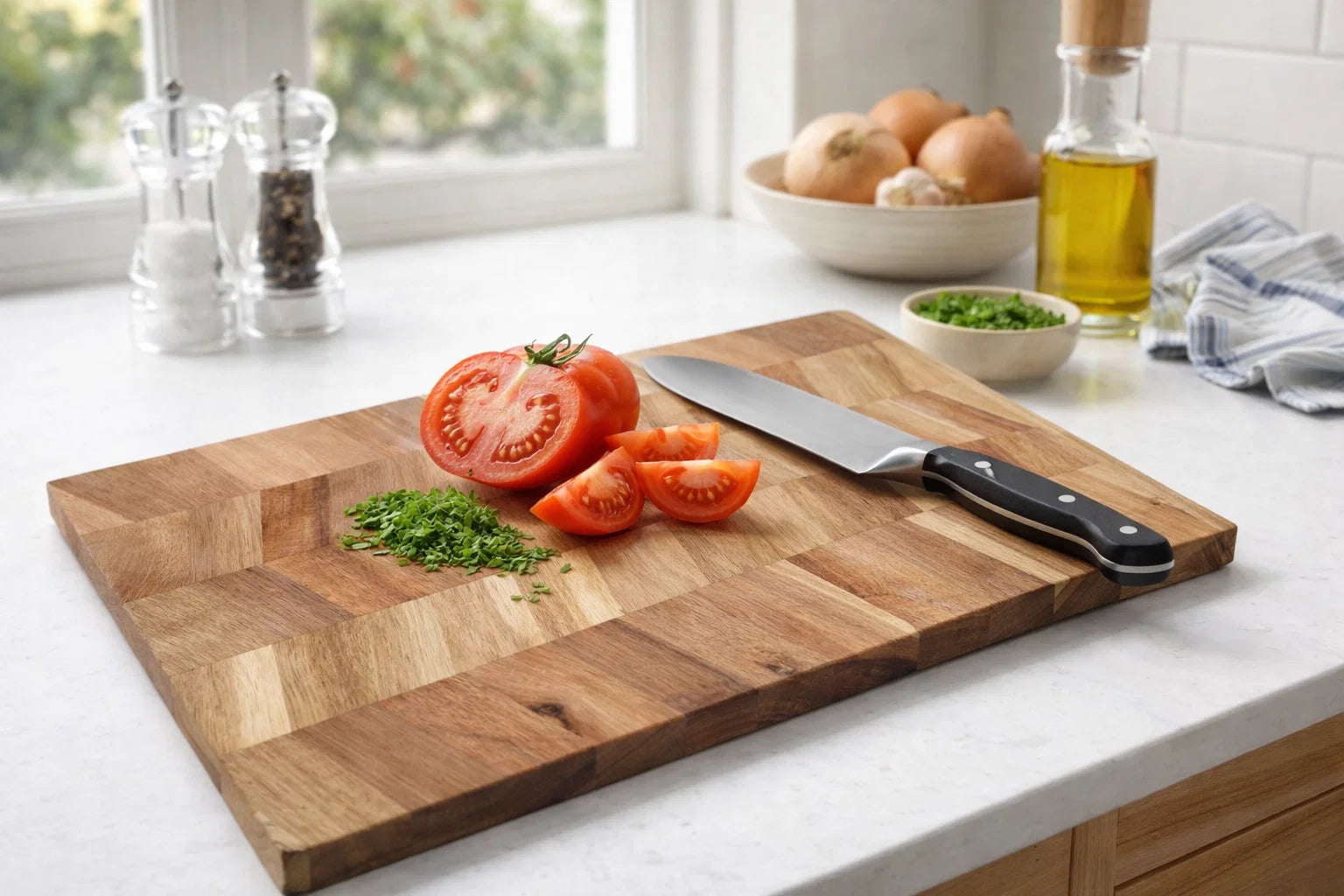 Door het acaciahout is de snijplank extra slijtvast en sterk