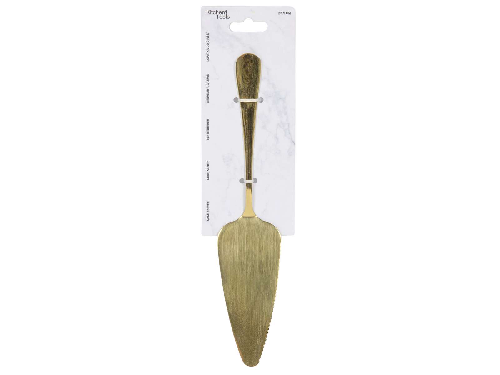 Maak het serveren van taart extra stijlvol met deze goudkleurige taartschep van 22,5 cm. De luxe uitstraling combineert elegantie met functionaliteit, zodat je elk plakje moeiteloos kunt presenteren. Gemaakt van roestvrij staal met een goud finish, duurzaam én geschikt voor dagelijks gebruik.