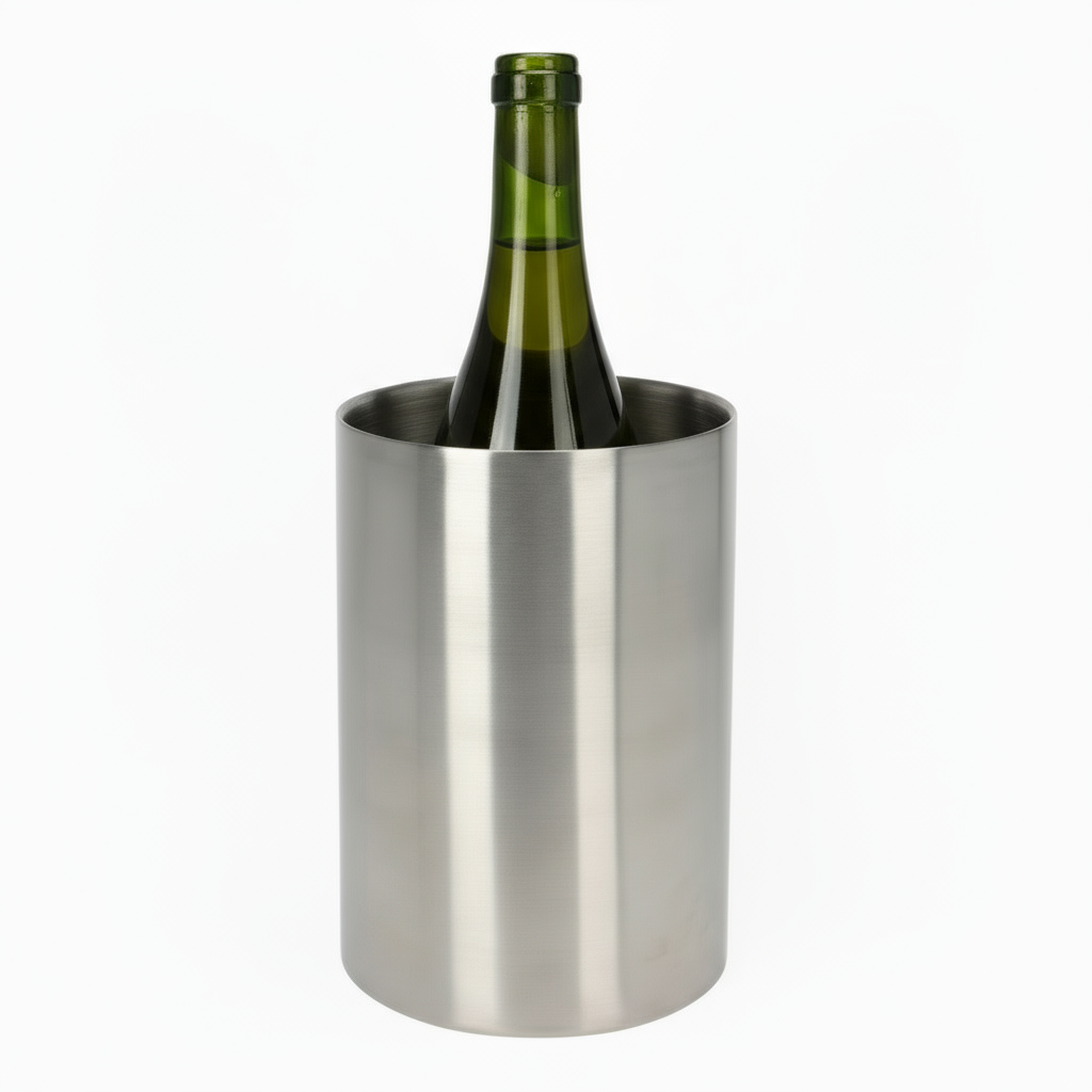 Met deze stijlvolle wijnkoeler in een brushed afwerking houd je je wijn of champagne op een ideale temperatuur én geef je je tafel een moderne uitstraling. De koeler is gemaakt van roestvrij staal met een subtiele geborstelde look, waardoor hij zowel functioneel als elegant is. Een fraaie toevoeging voor elk diner of borrelmoment.