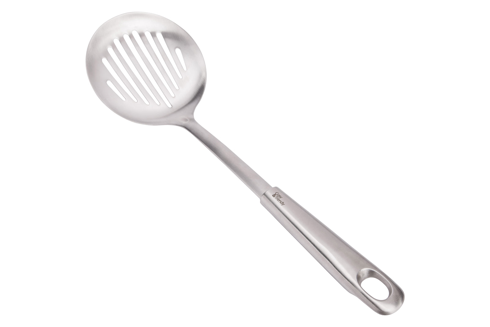 De Cosy & Trendy Schuimspaan - Delish Plus is een professionele en robuuste schuimspaan voor intensief gebruik in zowel horeca als thuiskeukens. Het volledig roestvrijstalen ontwerp voelt degelijk aan en is eenvoudig te reinigen. Dankzij het ruim geperforeerde blad loopt olie en kookvocht snel terug, zodat je ingrediënten knapperig blijven. Het lange handvat geeft goede reach in diepe pannen en levert betrouwbare, hygiënische prestaties tijdens dagelijks werk.