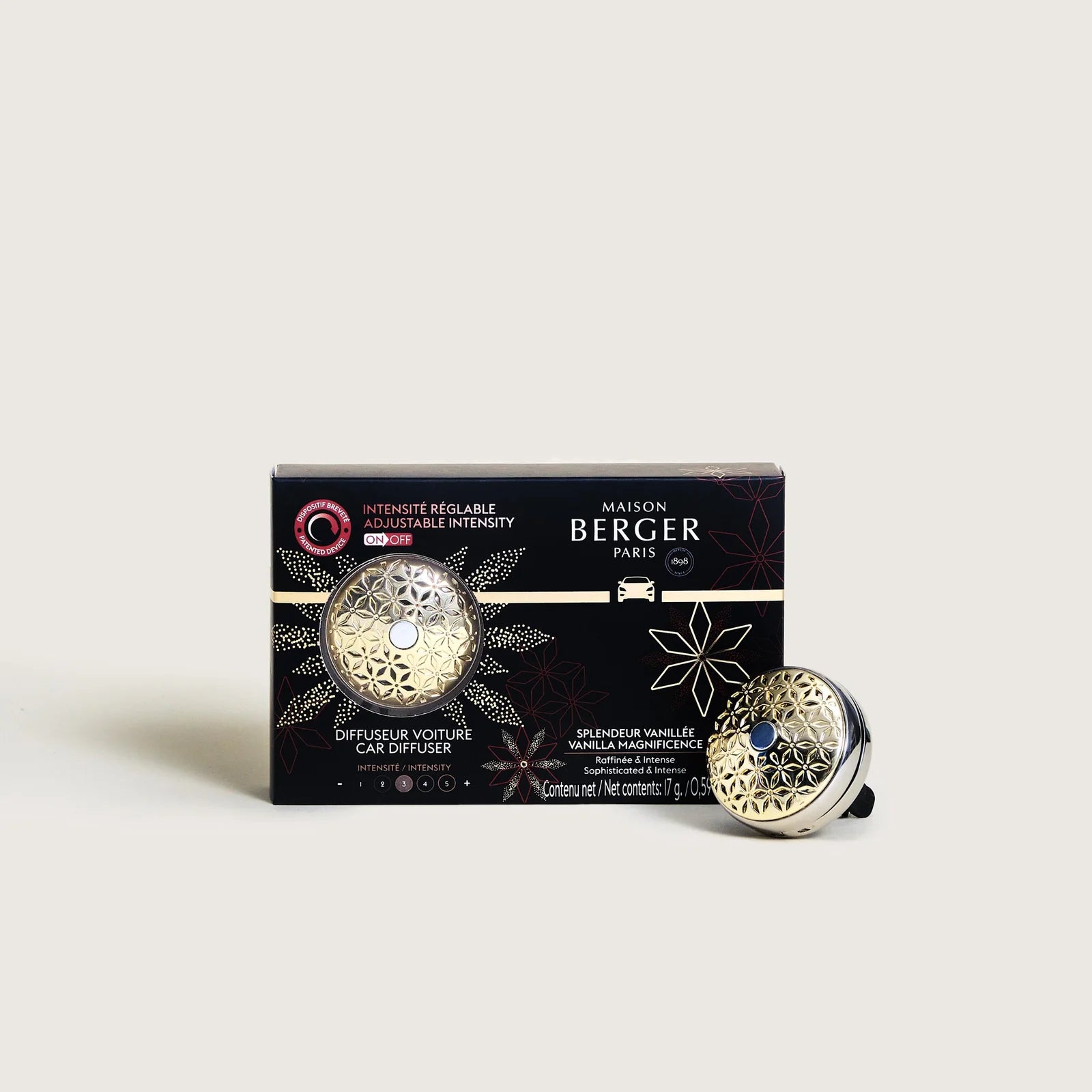 Met de Maison Berger autodiffuser Modulable Pomelis geef je je auto in één keer een luxe uitstraling én een verfijnde geur. De compacte diffuser klik je eenvoudig op het ventilatierooster, waarna de geur zich zachtjes door het interieur verspreidt. Dankzij het modulable systeem kun je de intensiteit van de geur naar wens aanpassen. De geur Splendeur Vanillée zorgt voor een warme, elegante sfeer tijdens elke rit, van korte boodschappen tot lange roadtrips.