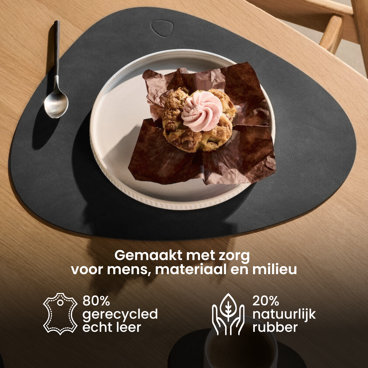 LIND DNA Onderzetters Nupo – Leer – Anthracite – ø 10 cm – 4 Stuks