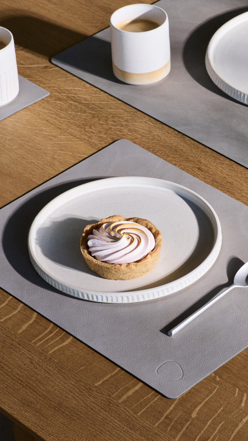 De LIND DNA Placemats Nupo – Lichtgrijs – 45 x 35 cm – 2 Stuks geven je eettafel een rustige, moderne uitstraling. Gemaakt van echt leer, 80 % gerecycled leer en 20 % natuurlijk rubber. Deze placemats hebben een een mooie leer oppervlakte en een zachte, soepele structuur. De subtiele lichtgrijze kleur voegt een tijdloos accent toe en beschermt je tafel tegen krassen, hitte en vlekken.