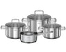 De Rosle Pannenset Moments biedt een uitgebreide set van zeven pannen voor alle kookbehoeften. Of je nu wilt bakken, braden, koken of stoven, deze set biedt de juiste pannen voor elke taak. De pannen zijn gemaakt van hoogwaardig roestvrij staal en geschikt voor gebruik op alle warmtebronnen, inclusief inductie. De set heeft een stijlvolle uitstraling die in elke moderne keuken past.