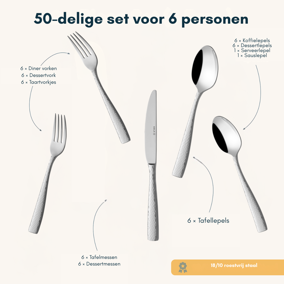 Deze collectie is ontworpen voor dagelijks gebruik, maar is ook ideaal voor speciale gelegenheden dankzij het stijlvolle en tijdloze ontwerp. Het bestek ligt prettig in de hand en is perfect uitgebalanceerd, wat bijdraagt aan een comfortabele eetervaring. Daarnaast is het bestek vaatwasserbestendig, waardoor het zowel praktisch als elegant is.
