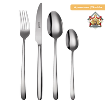 Breng stijl en functionaliteit naar uw eettafel met de Sola Bestekset Ibiza. Deze 24-delige set, geschikt voor 6 personen, combineert een tijdloos Scandinavisch design met duurzame materialen, waardoor het perfect is voor zowel dagelijks gebruik als speciale gelegenheden.